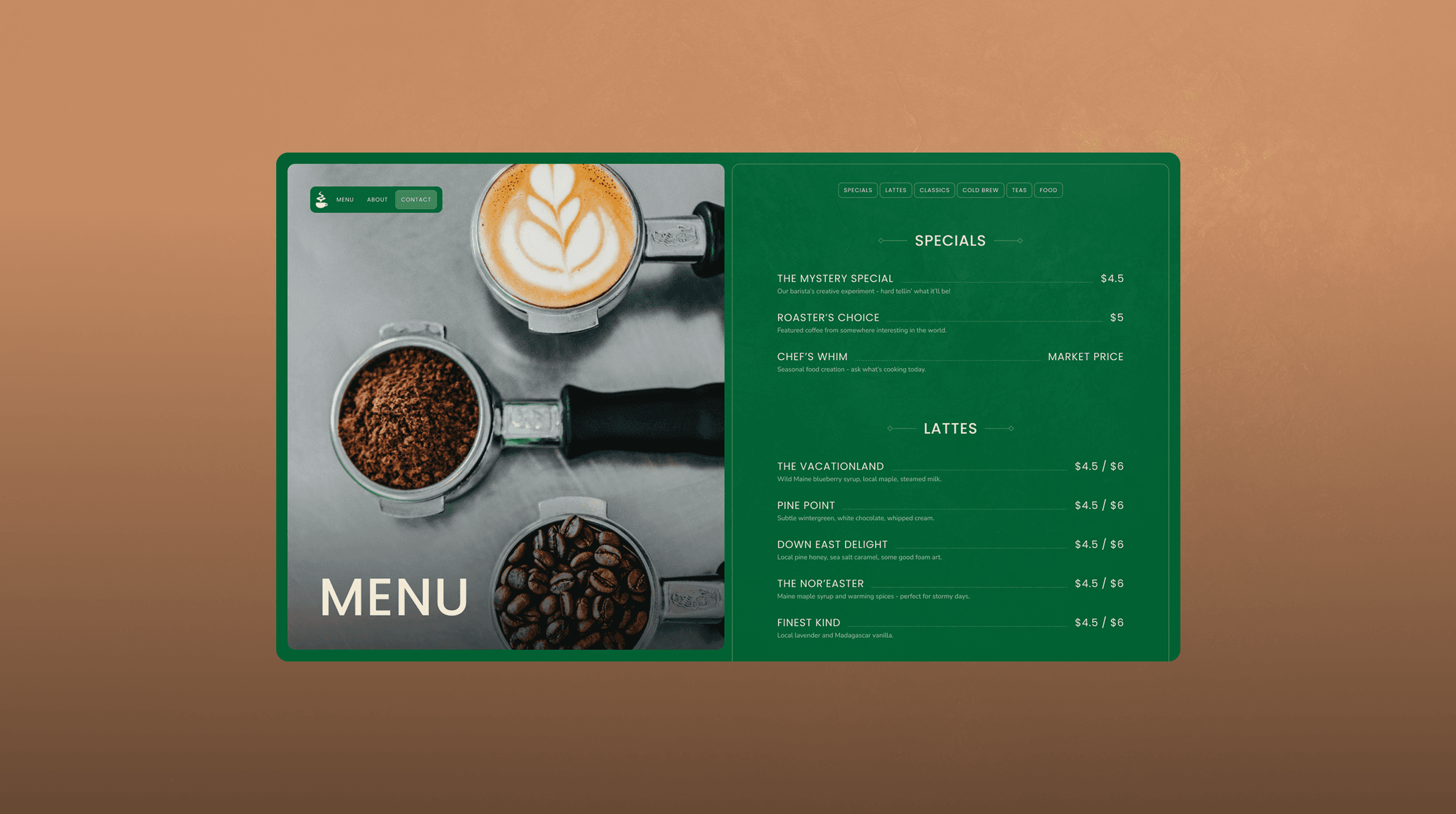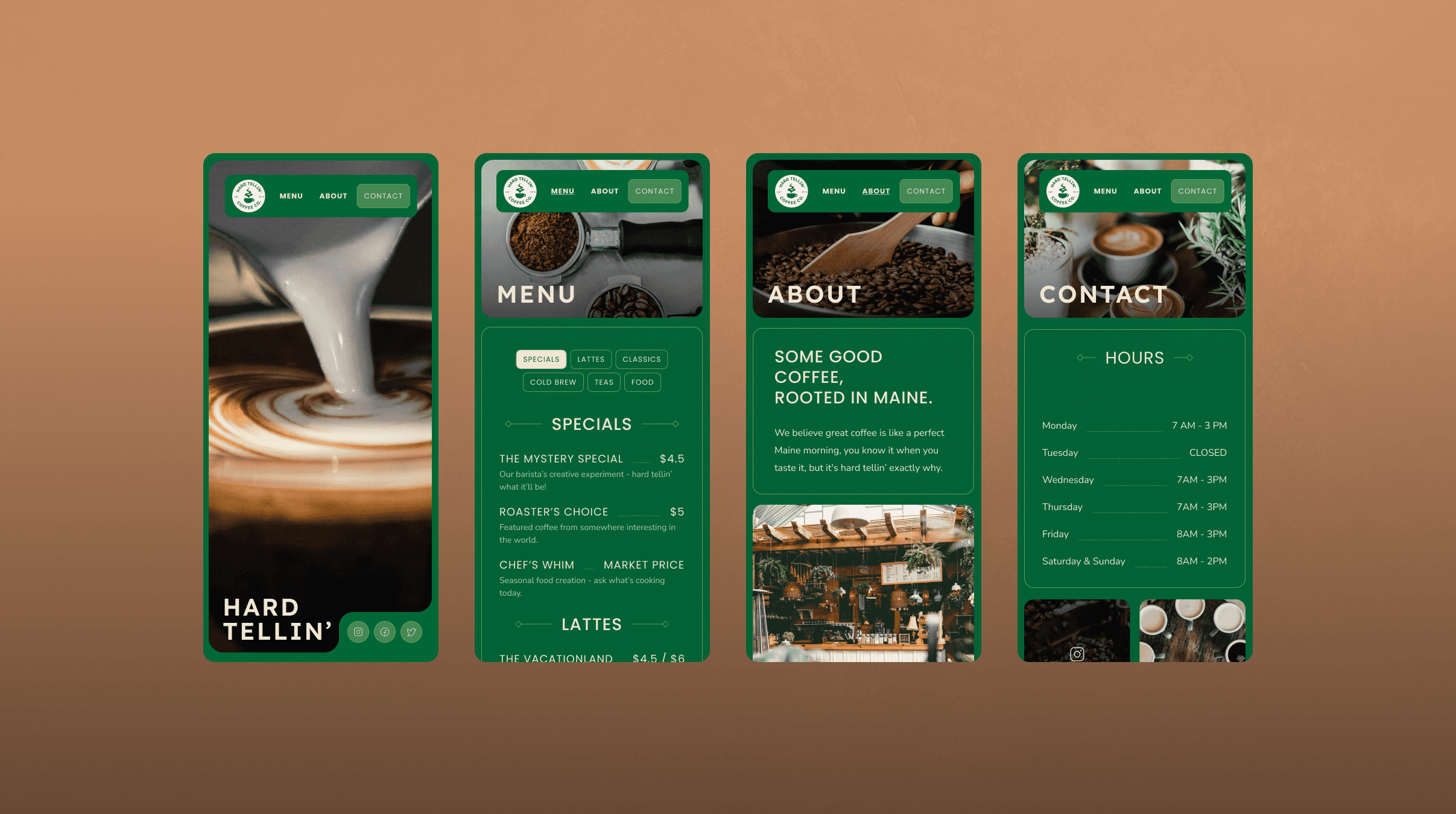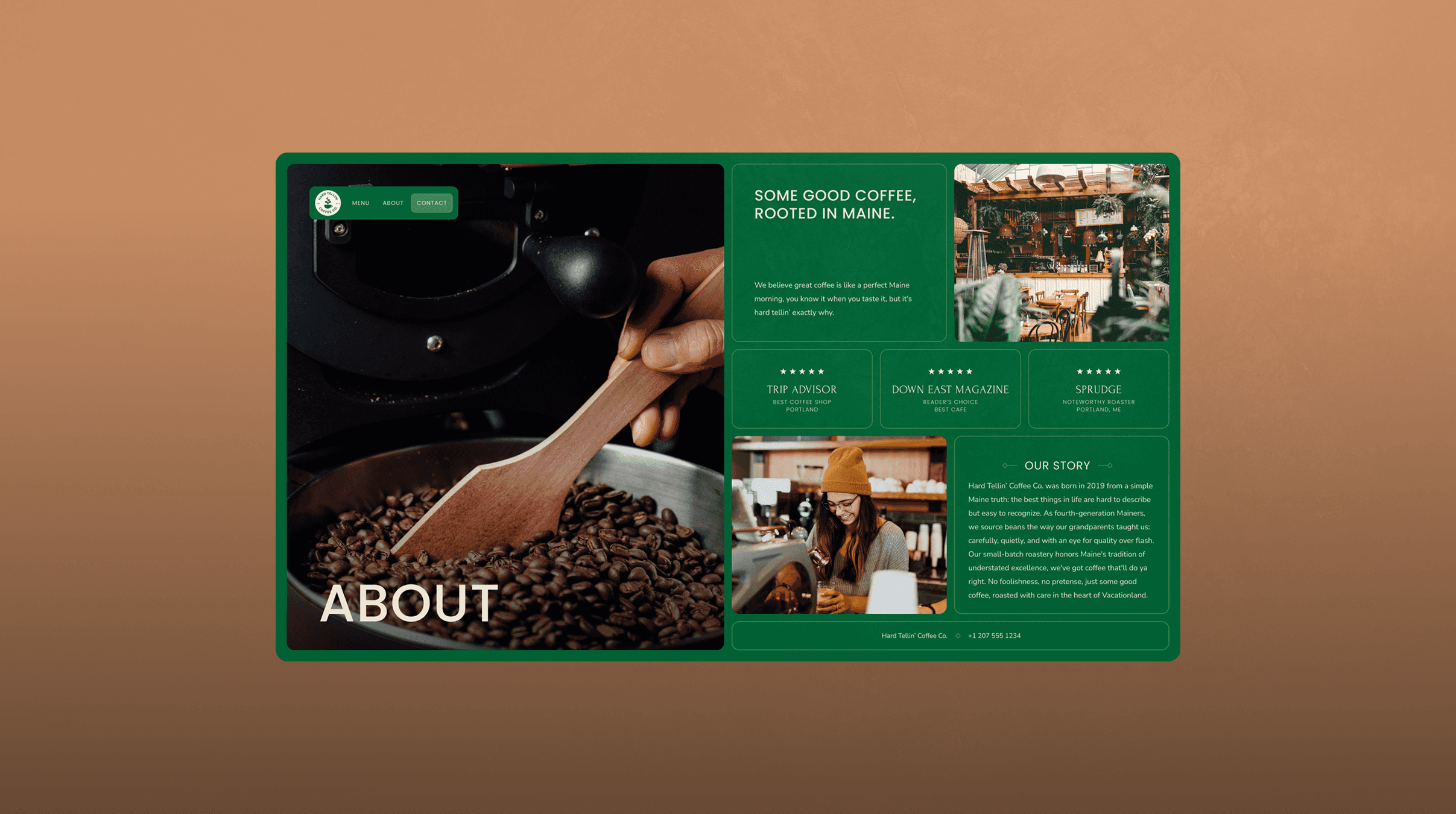 What started as a simple coding assignment became an opportunity to practice the full design-to-development pipeline. I created Hard Tellin' Coffee Co., a fictional Maine coffee roastery that embodies the state's philosophy of quiet excellence and dry humor.